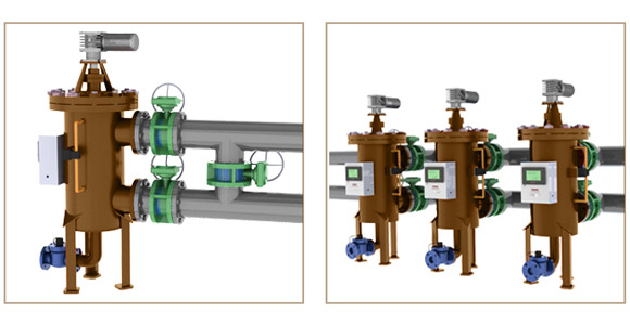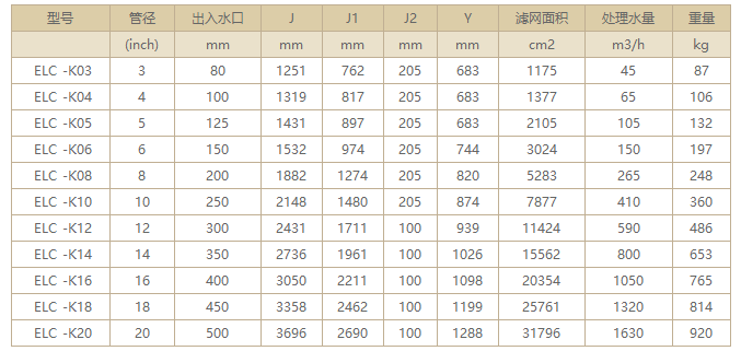 技術參數 單臺處理水量:45-2350m³/h 最大工作壓力:0.1-1.6Mpa 過濾器清潔時的壓力損失:≤0.018Mpa 最高工作水溫:95℃ 過濾精度范圍:100-3000μm 自清洗所需水量:<1% 自清洗時間:10-60秒 自清洗控制方式:壓差、時間及手動 電控方式:交流三相380V/ 50Hz 控制界面:數顯、旋鈕、開關 濾網類型:316L編織網、楔形網 尺寸對照表 安裝圖